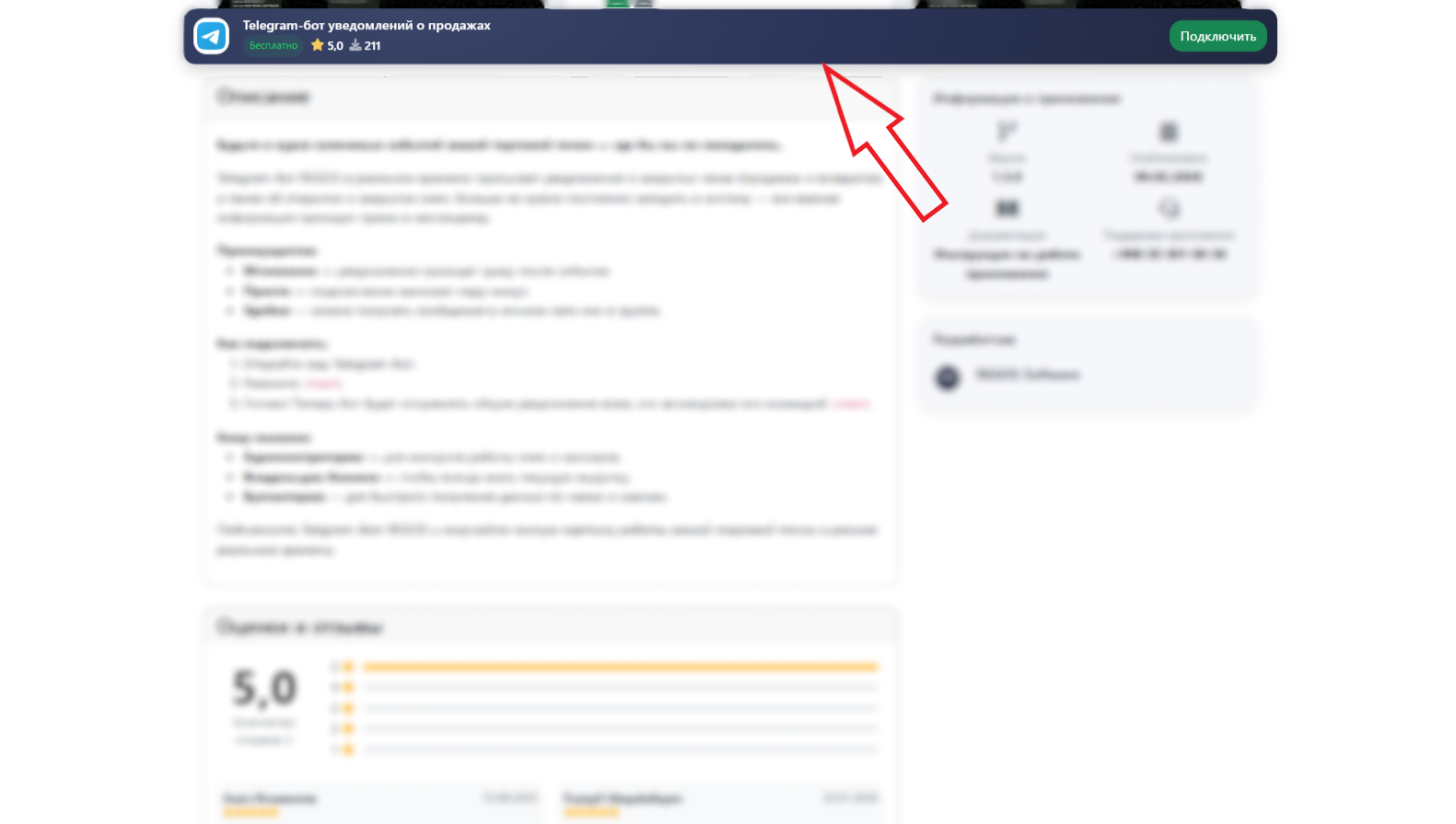 Integratsiya kartochkasi sahifaning yuqori qismida yangi mahkamlangan bannerga ega bo‘ldi. Unda asosiy ma’lumotlar aks ettiriladi: integratsiya nomi, qisqacha tavsifi, holati (bepul yoki pullik), reytingi, o‘rnatishlar soni, «Ulash» va «Bo‘lishish» tugmalari.