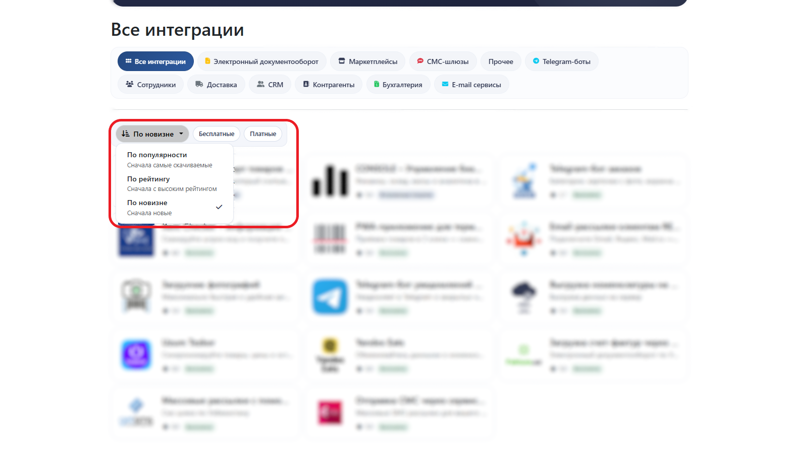 Shuningdek, bepul va pullik integratsiyalarni ko‘rsatish imkonini beruvchi filtrlar ham paydo bo‘ldi.