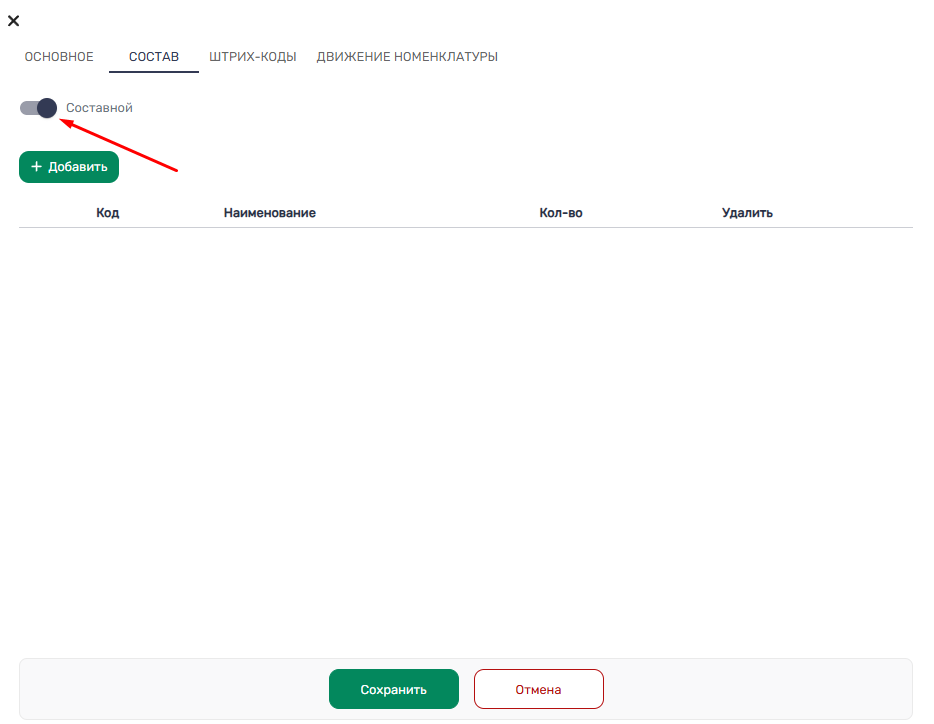 Endi “Tarkib” bo‘limi darhol mavjud bo‘ladi va slayder faollashtirilgach, qo‘shimcha amallarsiz tarkibga kiruvchi mahsulotlarni qo‘shish mumkin.