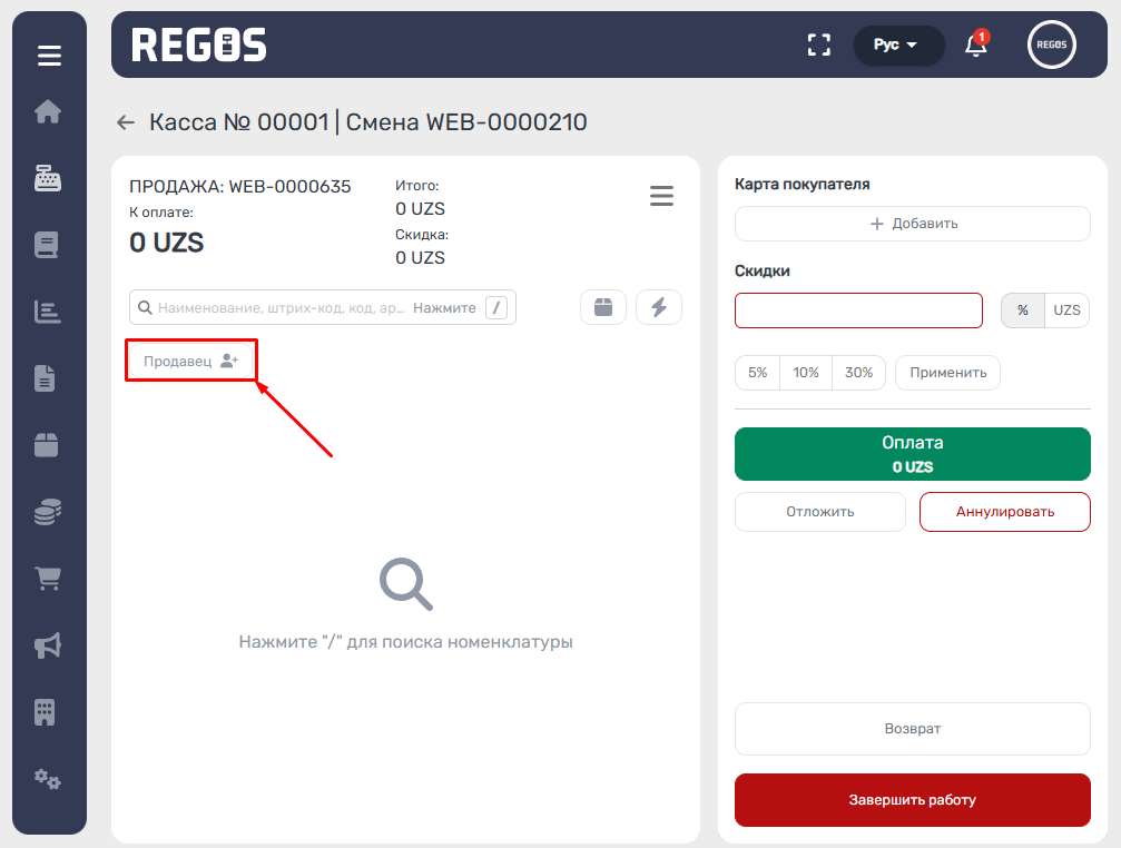 5. Kassirning ishchi ekraniga “Sotuvchini qo‘shish” tugmasi qo‘shildi.