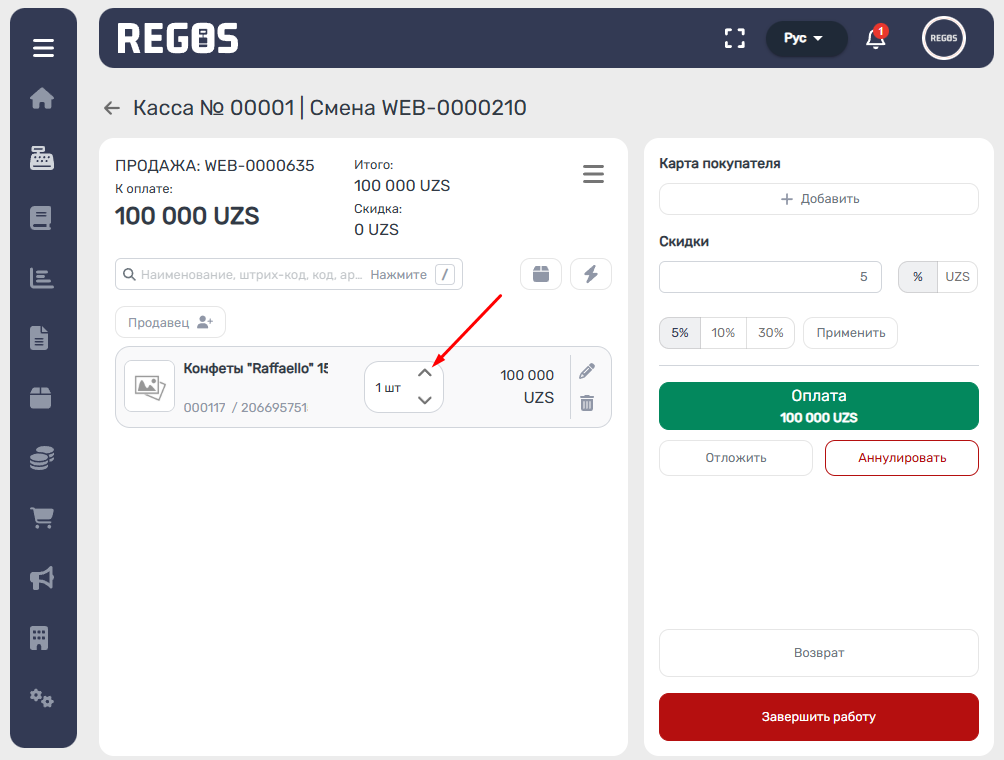 6. Chegirmalar bilan ishlash kassirning ishchi ekraniga chiqarildi.