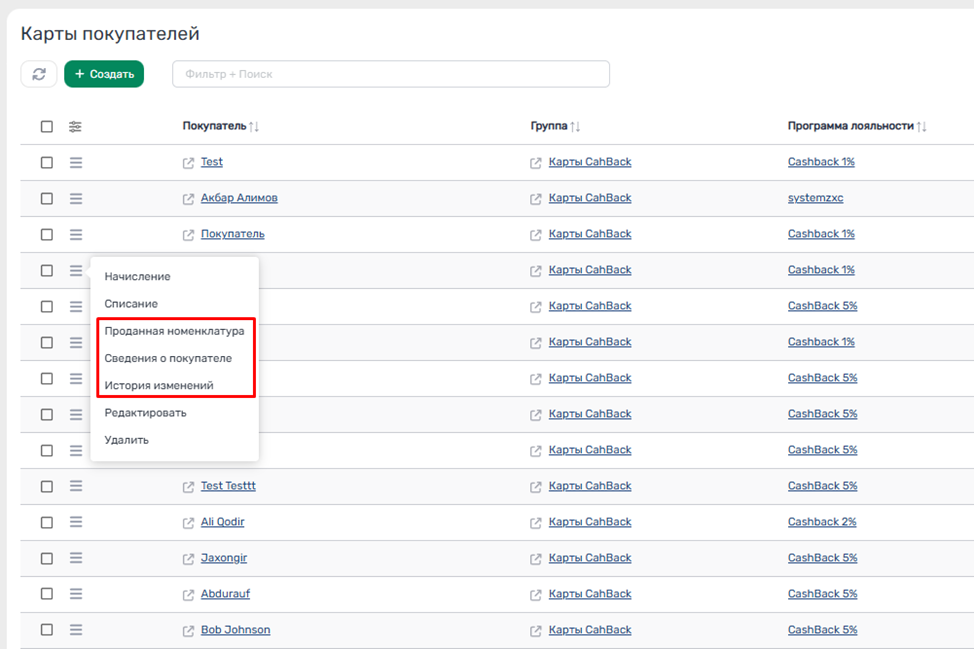 6. “Mijozlar kartalari” bo‘limiga quyidagilar qo‘shildi: