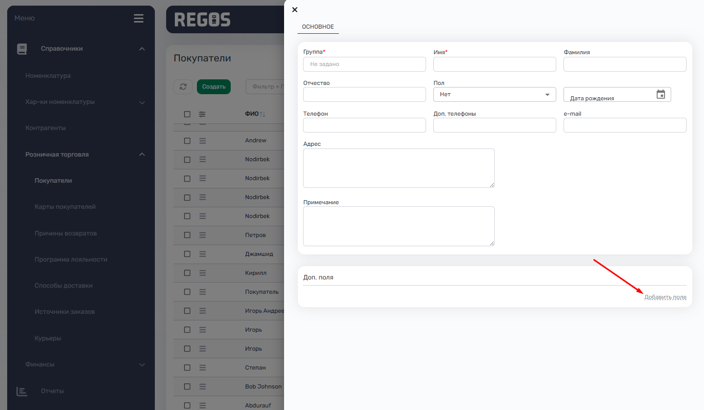 5. Endi xaridor kartochkasining «Asosiy» yorlig‘ida o‘ziga xos qo‘shimcha maydonlarni qo‘shish imkoniyati paydo bo‘ldi.