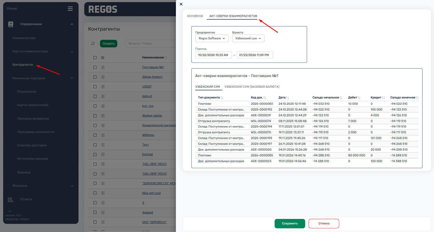 6. Kontragent kartochkasiga «O‘zaro hisob-kitoblarni solishtirish dalolatnomasi» yorlig‘i qo‘shildi, u kontragentlar bilan hisob-kitoblarni qulay tahlil qilish imkonini beradi.
