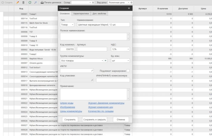Agar siz allaqachon mavjud kod bilan yangi nomenklatura yaratmoqchi bo‘lsangiz, tizim xato haqida ogohlantiruvchi xabar beradi.